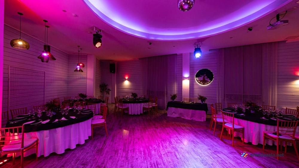 В уютном банкетном зале царит приветливая и гостеприимная атмосфера. Посетители отмечают вкусную кухню, разнообразный ассортимент напитков и безупречное обслуживание персонала. Интерьер выполнен со вкусом: чистота, комфорт и красивый дизайн создают ощущение домашнего уюта. Здесь можно отметить праздники в кругу семьи, весело провести время с друзьями или поучаствовать в развлекательных мероприятиях, регулярно организуемых заведением. Единственным небольшим недостатком некоторые гости считают неудобное расположение входа, но в целом зал производит крайне положительное впечатление.