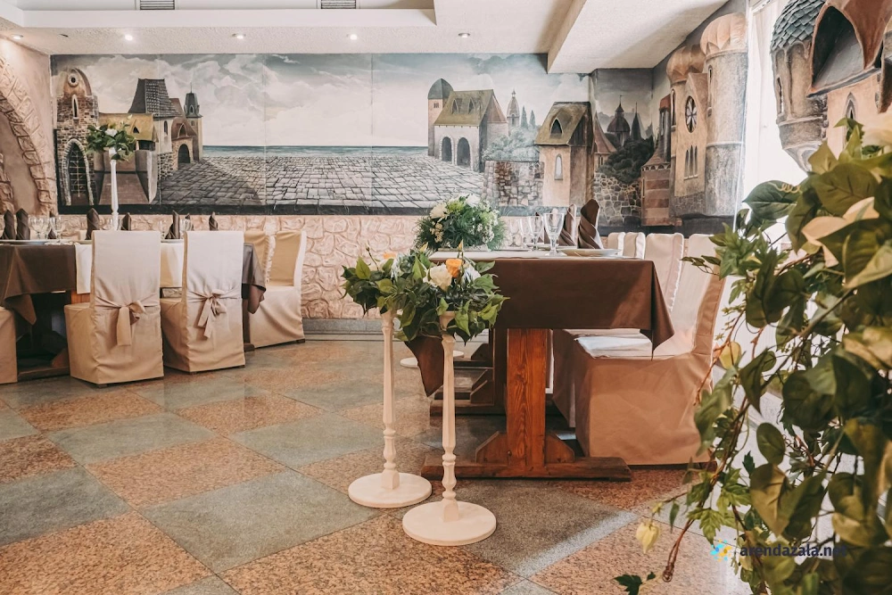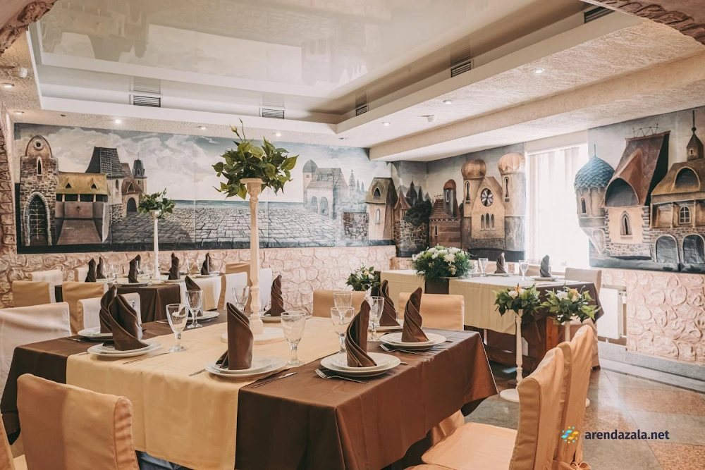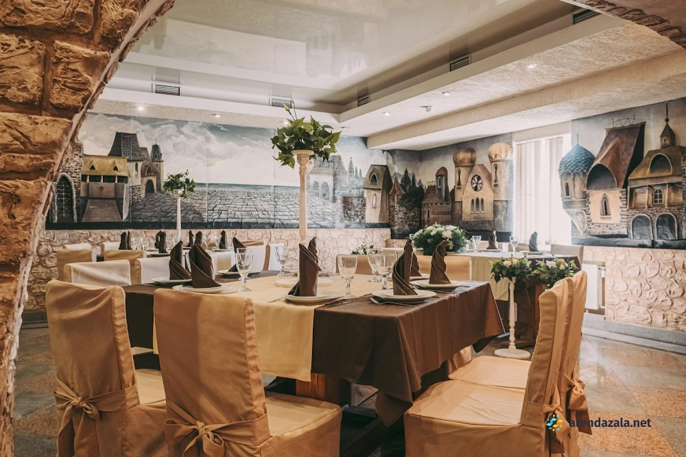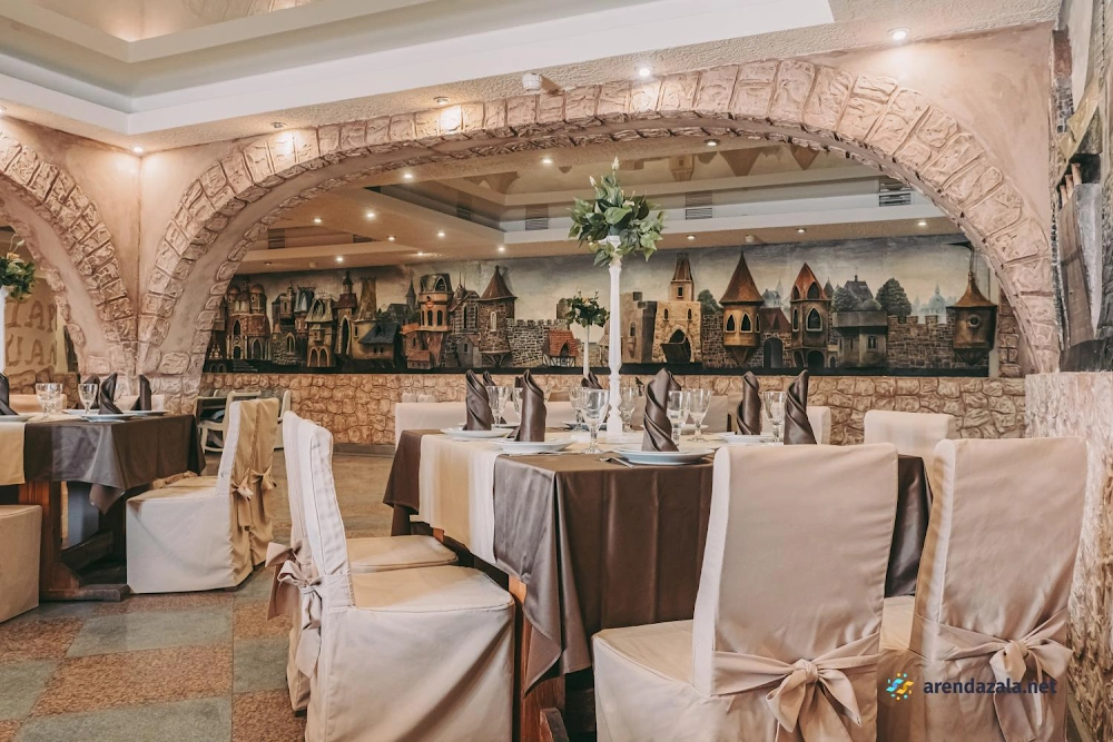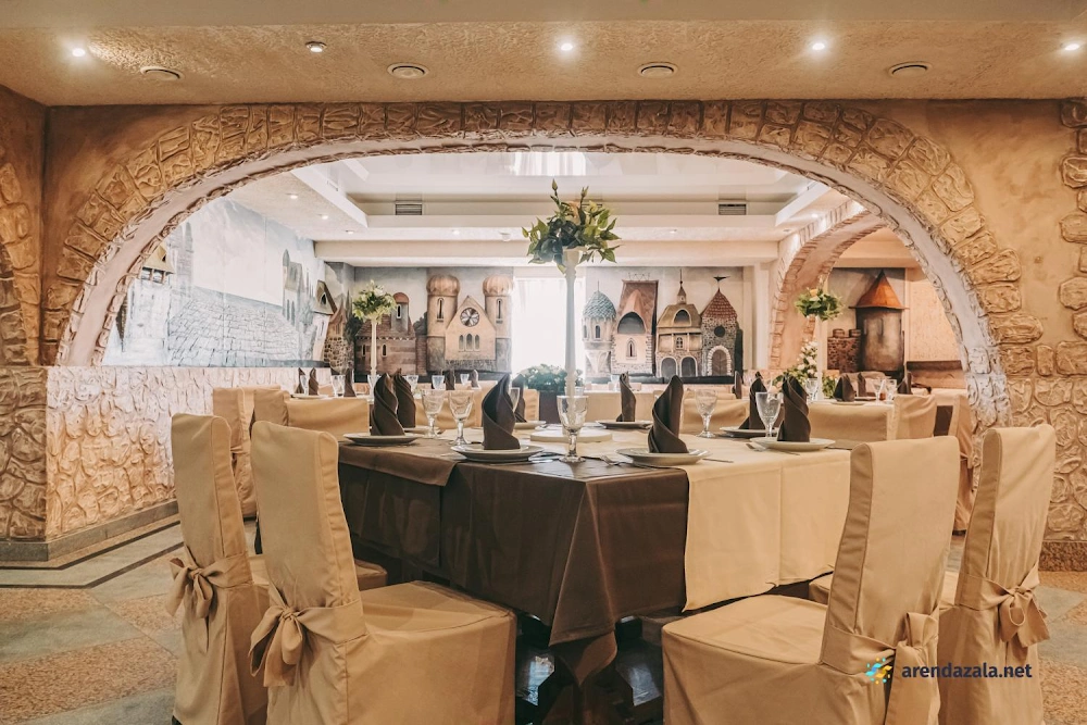 В основном зале царит атмосфера торжества и гостеприимства. Обширное просторное помещение разделено на уютные зоны для разных целей: отдельные зоны для столиков, фуршета, фотосессий и танцпола. Повара готовят вкусные, обильные и разнообразные блюда. Персонал внимателен к пожеланиям гостей, помогает с составлением праздничного меню и проведением торжеств. Благодаря интересному интерьеру, световому и музыкальному оформлению создается особая атмосфера для праздников и памятных событий. Зал предлагает все условия для комфортного и запоминающегося времяпрепровождения.