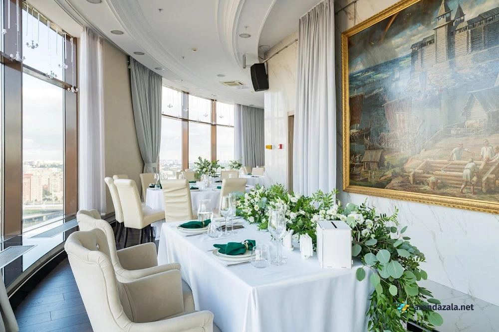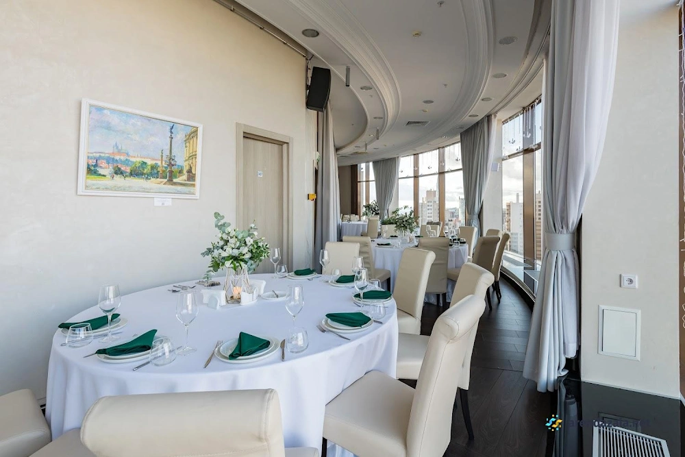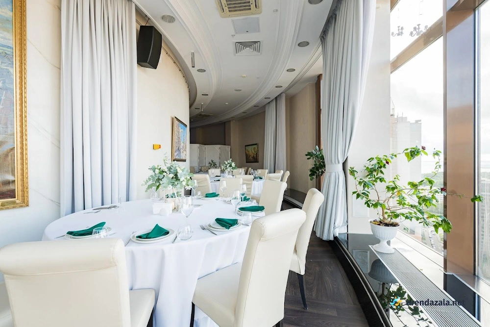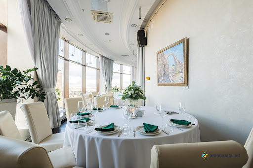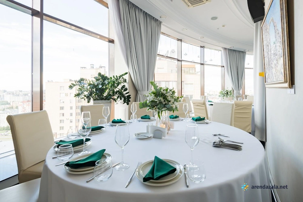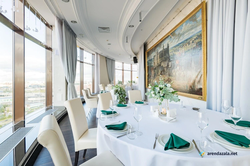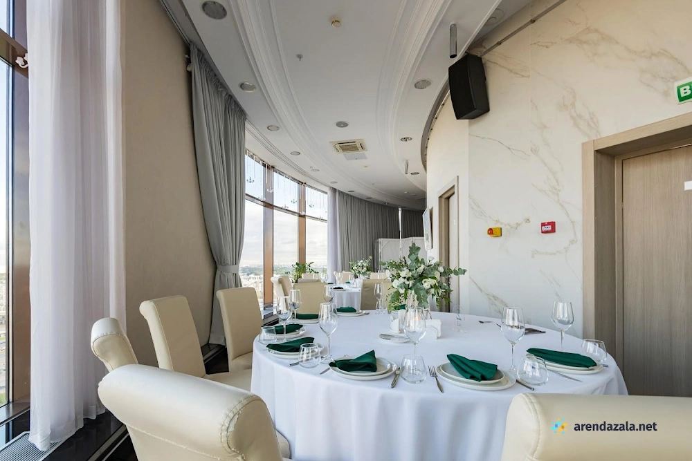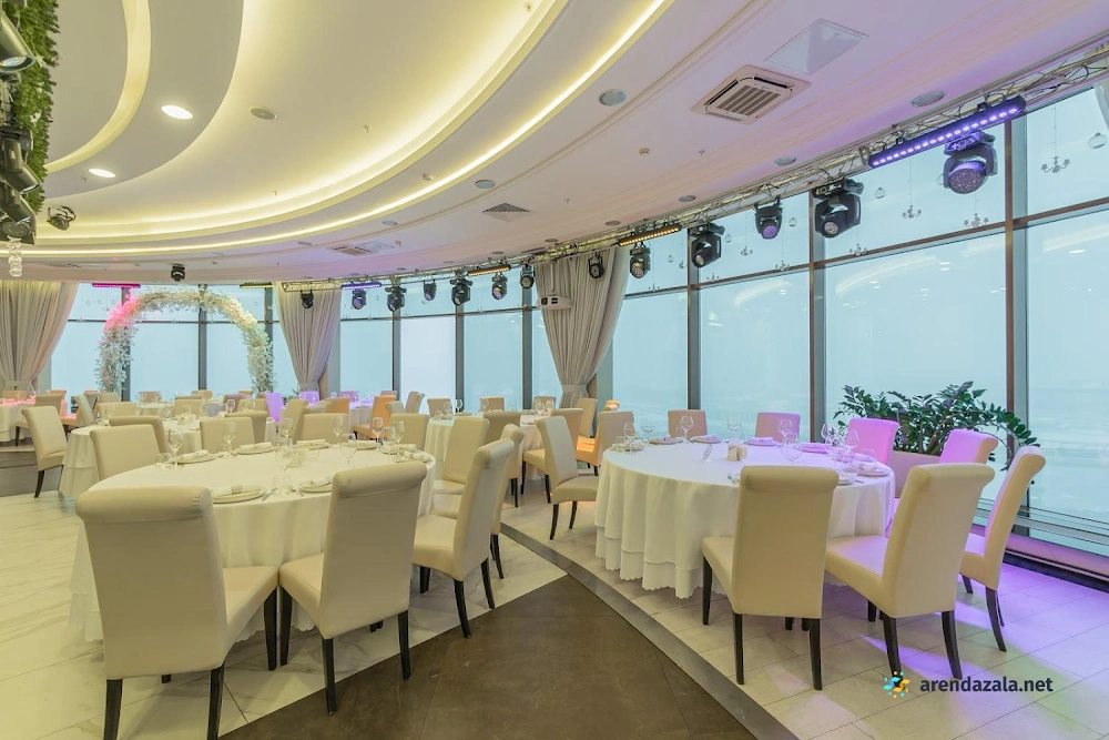 Основной зал представляет собой уникальное панорамное пространство на 24 этаже, которое вращается на 360 градусов, открывая потрясающий вид на Газпром Арену, Приморский район, ЦПКиО и Финский залив. Это идеальное место для проведения торжественных мероприятий, таких как свадьбы и корпоративы, где гости могут насладиться изысканной кухней, профессиональным обслуживанием и захватывающими видами из огромных окон. Интерьер отличается оригинальным дизайном, а высококлассная команда обеспечивает безупречную организацию любого праздника.