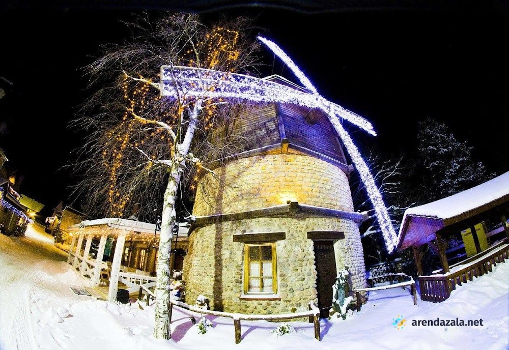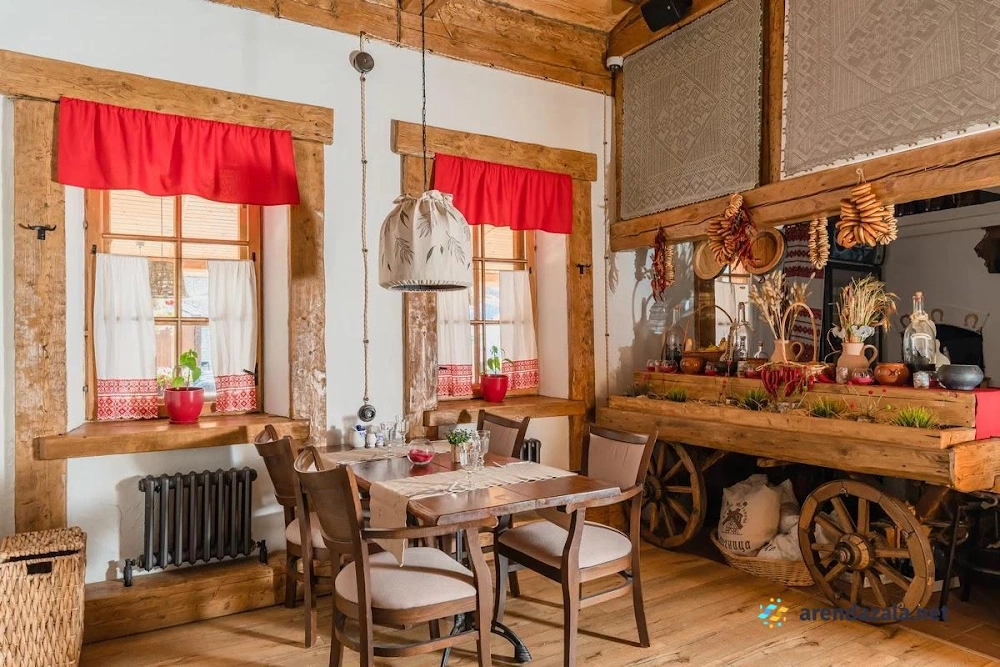 Основной зал ресторана "Корчма" Старая Мельница приглашает посетителей окунуться в атмосферу прекрасного места с красивой территорией, где вечером зажигается романтичное освещение. Здесь подают вкусные, свежие блюда в трех уютных ресторанах, а по выходным для детей организованы целый день развлечений и щедрые сытные завтраки с шампанским. Номера регулярно убираются и пополняются всем необходимым, однако стены довольно тонкие, а домики небольшие и обшарпанные, но это не мешает насладиться отдыхом или провести торжественное мероприятие в банкетном зале.
