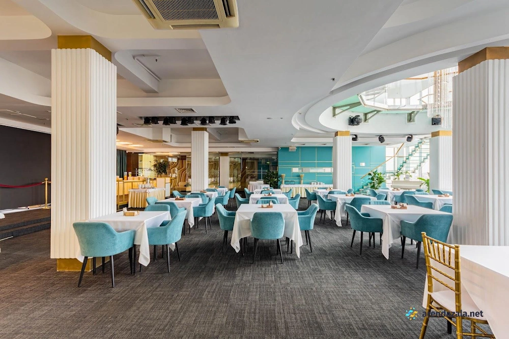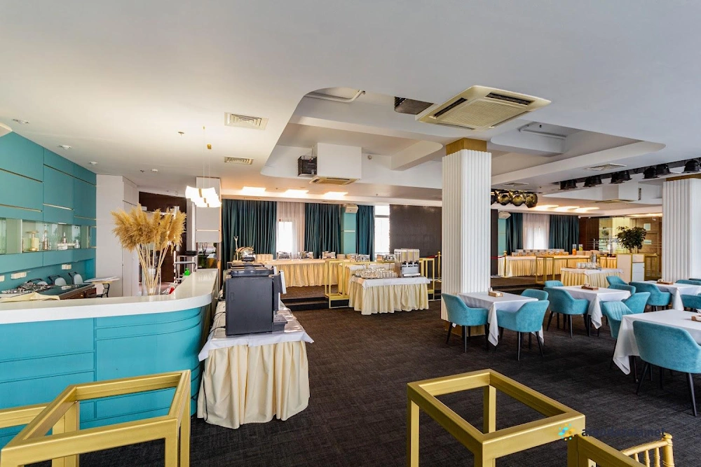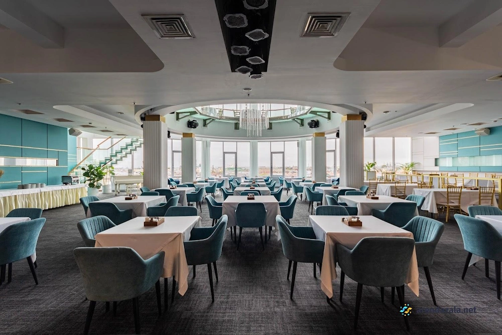 Зал "Голубая гостиная" предлагает потрясающие панорамные виды на центр города и его достопримечательности с высоты 9 этажа, заменяющие экскурсию по крышам. Ресторан располагает аутентичной европейской кухней и вкусными десертами, однако время приготовления блюд может быть продолжительным. При заказе следует уточнять состав блюд у внимательного и милого персонала. Обстановка ресторана отлично подходит для наслаждения живописными пейзажами в светлое время суток, а также для сытных и разнообразных завтраков.
