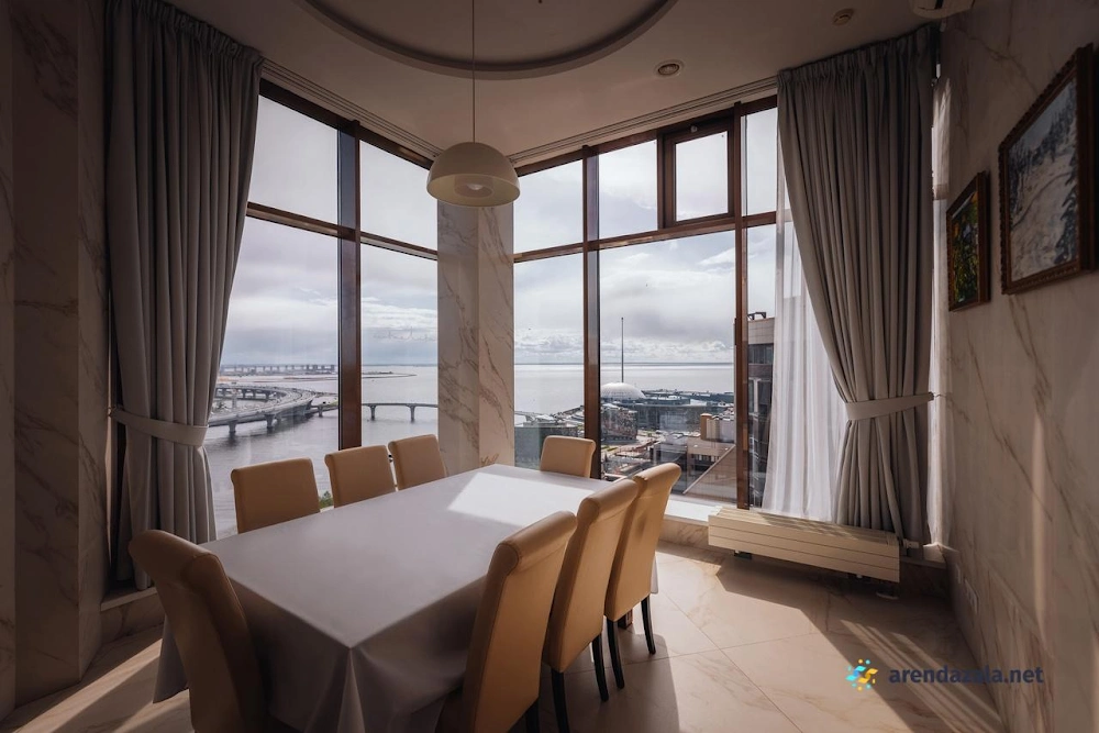 В центре культурной столицы расположен уникальный ресторан с вращающейся панорамной площадкой на верхних этажах небоскреба. Из его огромных окон открывается захватывающий вид на величественный Санкт-Петербург, блистающий красотами архитектуры и водными просторами Финского залива. Интерьер выдержан в классическом ресторанном стиле, создавая атмосферу торжественности и изысканности. Гостей ждет разнообразное меню от талантливого шеф-повара, качественный сервис и возможность провести незабываемые банкеты и вечеринки под живую музыку на танцполе с панорамными видами.