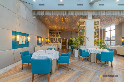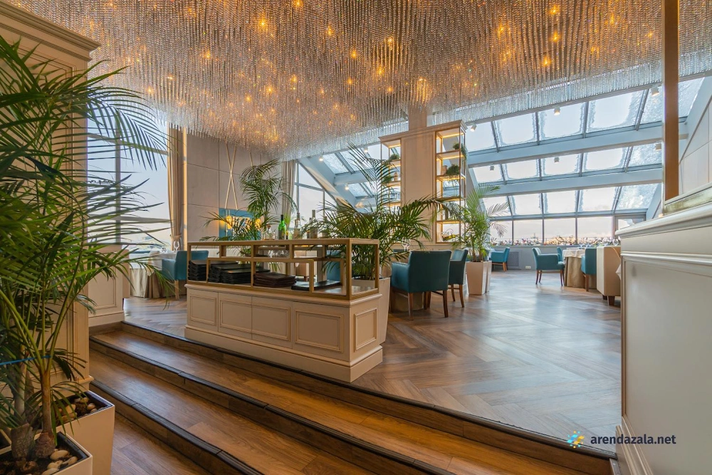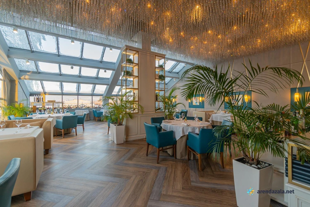 Ресторан поражает своим просторным, светлым и воздушным интерьером, украшенным изящными хрустальными люстрами и открывающим прекрасные виды Санкт-Петербурга с высоты птичьего полета через панорамные окна. Здесь царит атмосфера естественности и деликатности, гости чувствуют себя желанными благодаря внимательному и дружелюбному обслуживанию персонала. Кухня предлагает изысканные блюда, которые высоко оценивают посетители, также как и разнообразные напитки, включая ароматный глинтвейн. Независимо от погодных условий, в ресторане созданы комфортные условия для приятного времяпрепровождения.
